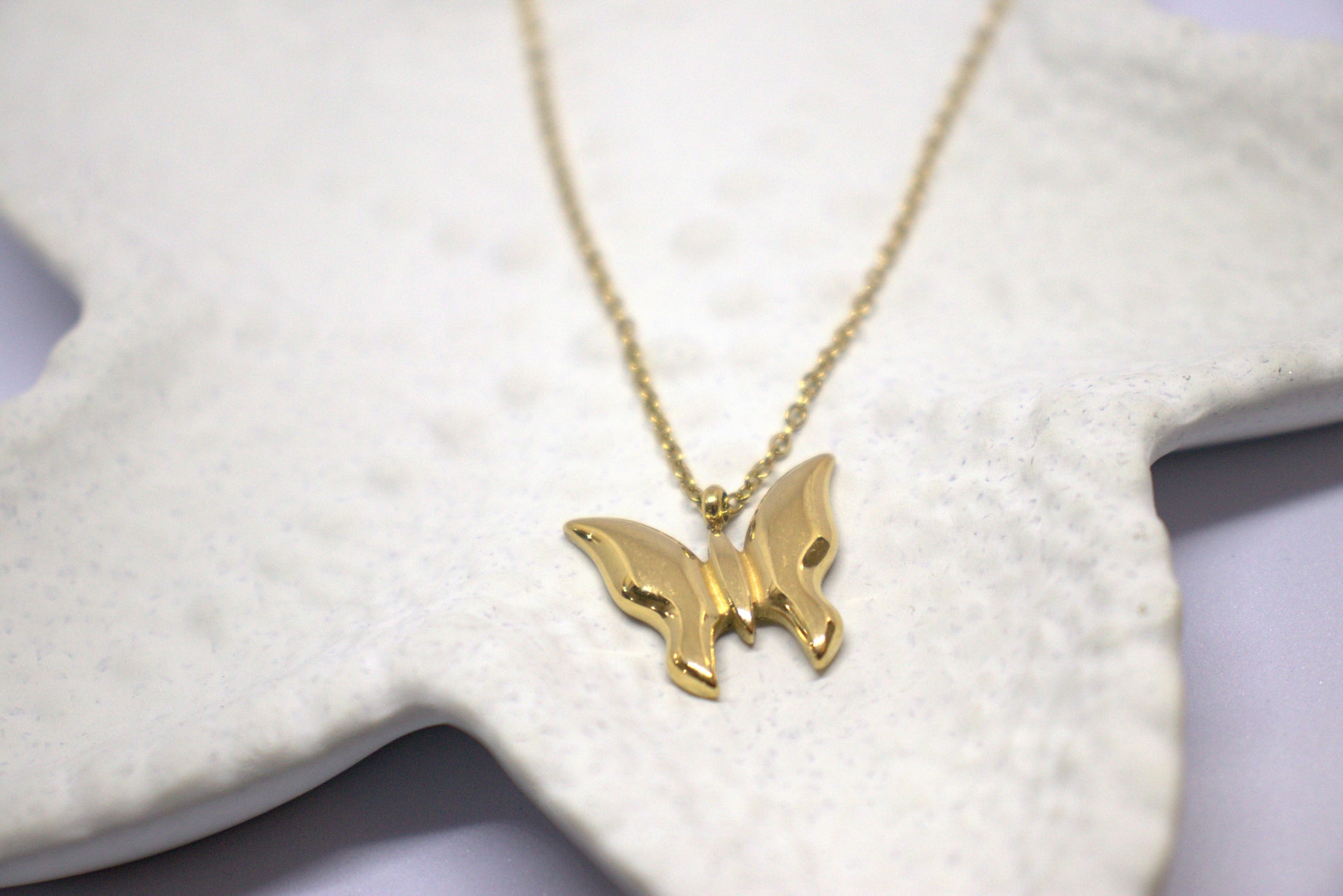 This minimal butterfly pendant in a warm gold tone offers a delicate and elegant accessory perfect for daily wear. Its simple design ensures versatility, complementing any outfit while adding a subtle touch of charm. Crafted for comfort and style, it’s an ideal choice for those who appreciate understated sophistication.